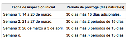 Así, el plazo de validez de los certificados de inspección técnica periódica de los vehículos cuya fecha de próxima inspección se encontrara comprendida en el periodo de vigencia del estado de alarma, se amplía en 15 días naturales más por cada semana transcurrida desde el inicio del estado de alarma hasta que se hubiera producido el vencimiento del certificado, conforme a lo dispuesto en el siguiente cuadro: